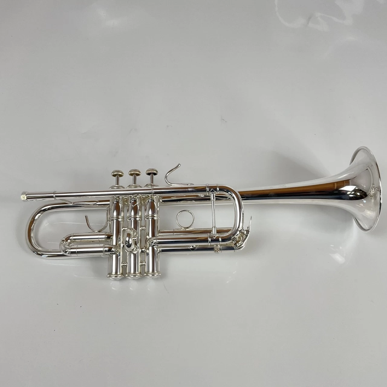 Demo Bach Stradivarius Model 229/25H, large bore (.462″), C trumpet in silver plate. Instrument is in excellent, like-new condition apart from minor surface imperfections. Includes original case.