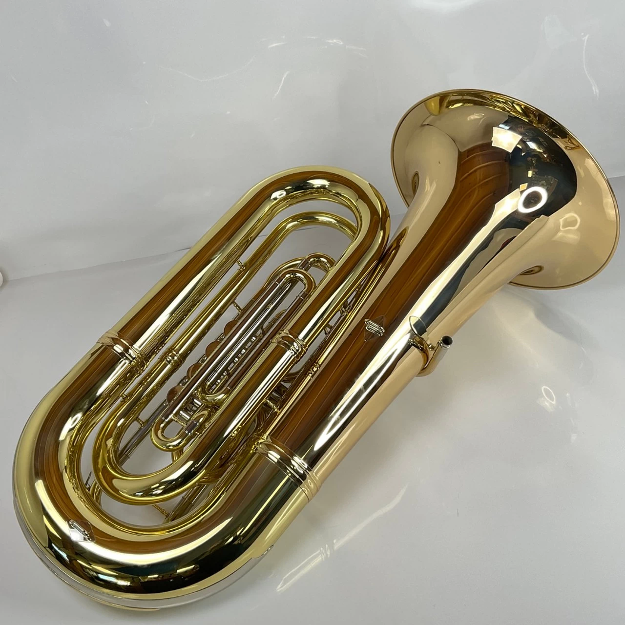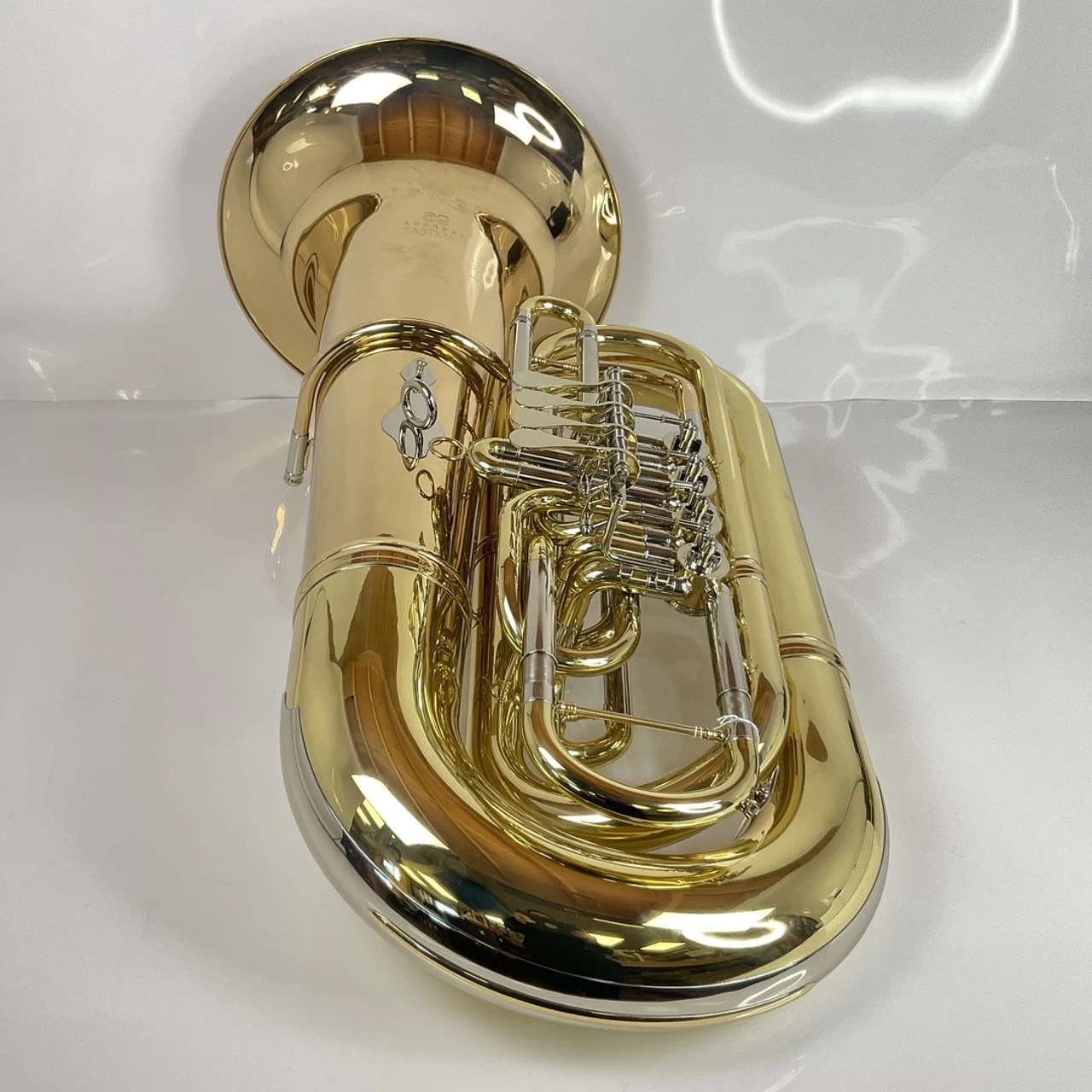 Demo Eastman EBB825G BBb tuba (SN: Y2101065) in lacquer with hard-shell case. 19″ upright bell and 4 rotor vavles of .743/.787″ bore. Takes American shank tuba mouthpiece. Display tuba has picked up some minor dings, dents and scratches. This tuba plays great!
