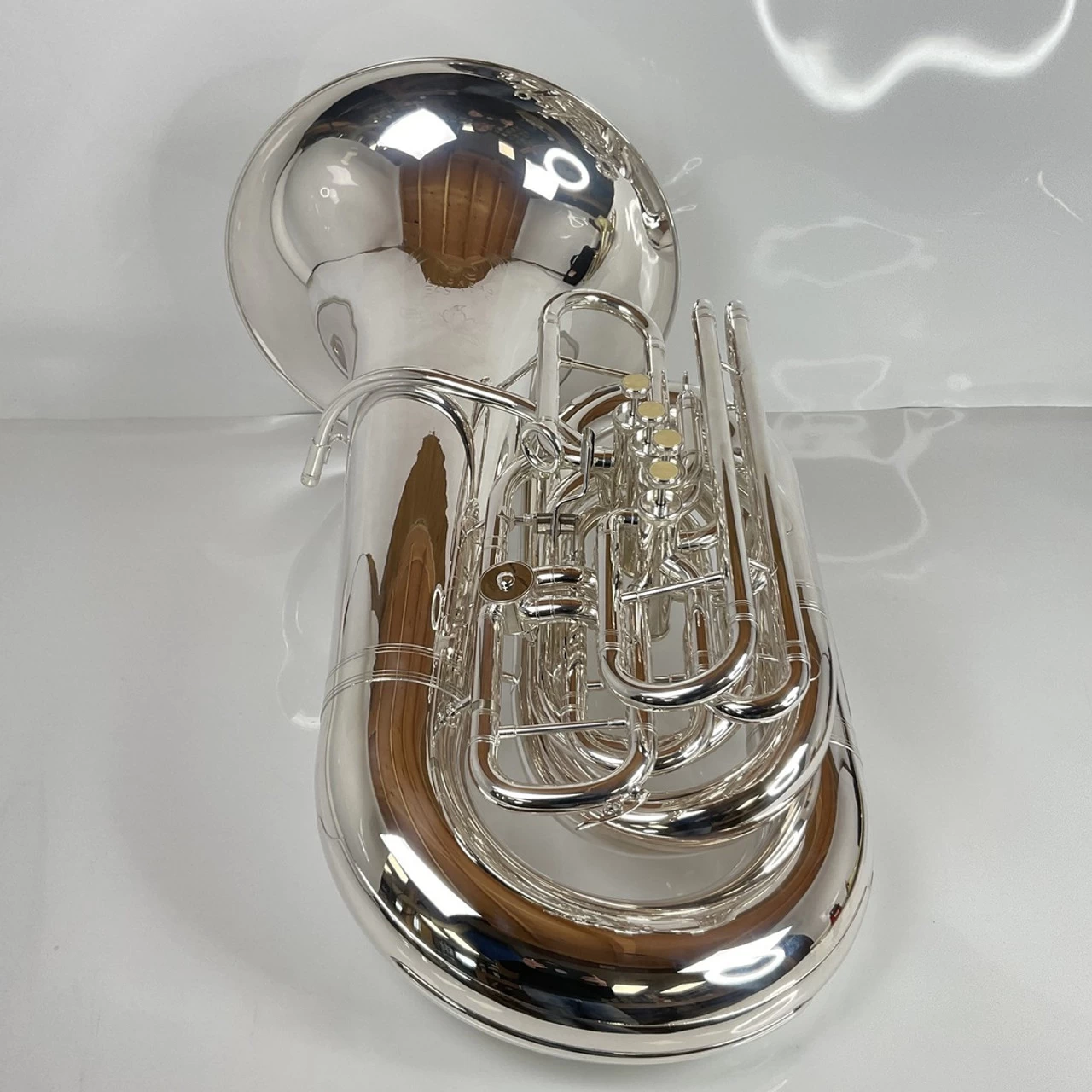 Demo Eastman EBC632S CC tuba (SN: 14974222) in silver with factory hard-shell case. 20″ upright bell and 4 front action pistons of .687″ bore with right thumb operated 5th rotor valve. Takes American shank tuba mouthpiece. In nearly new condition.