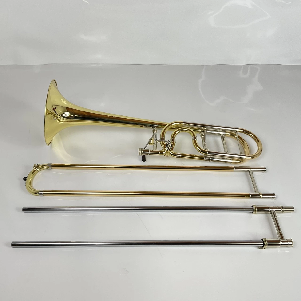 Demo Shires Alessi Q-Series Professional Bb/F Tenor Trombone in lacquer. .547” bore gold brass hand slide with yellow brass crook, open wrap rotor valve section, gold brass tuning slide, 8.5” light weight yellow brass. Instrument is in excellent, like-new condition. Includes case, mouthpiece and care kit.
