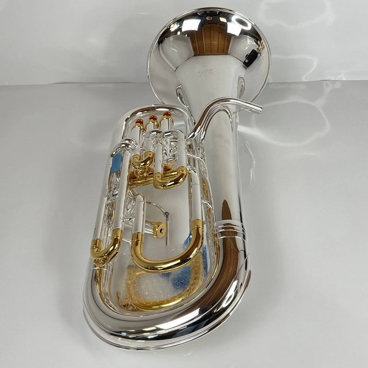 Demo Yamaha YEP-842TS Bb Euphonium in silver plate with gold trim, includes case. 11.75″ upright bell, 3 + 1 compensating pistons of .591/.661″ bore, accepts large shank mouthpiece. Instrument is in excellent, like-new condition. Includes original Yamaha case.