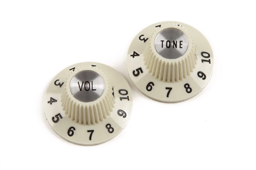 Fender Pure Vintage 1965 Jazzmaster Witch Hat Knobs, Set Of 2 Vintage White
