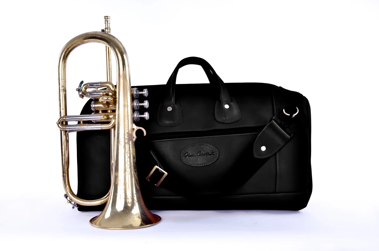 These are the original Glenn Cronkhite-designed flugelhorn bags that date back to the 1970s. Some of the original bags are still in use today! Made in the USA using only the finest “Top Grain” leathers and durable 1000D genuine Cordura fabrics, you can be assured that your flugelhorn is well protected in a well made bag.