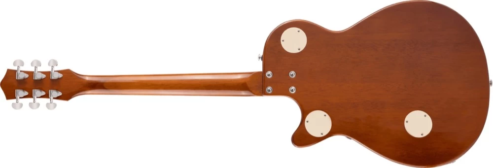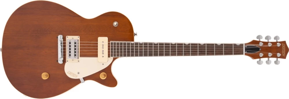 The G2215-P90 also features an anchored compensated wrap-around bridge, gold Electro-style control knobs, cream pickguard and nickel hardware. Part number 2806700593.