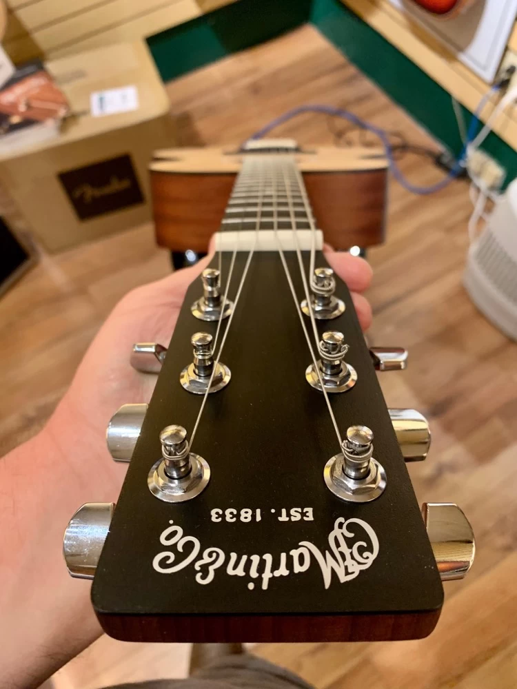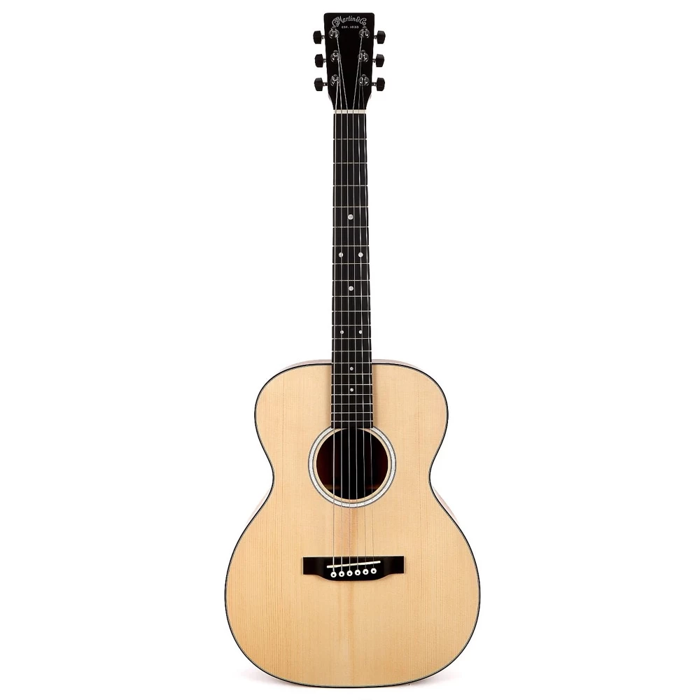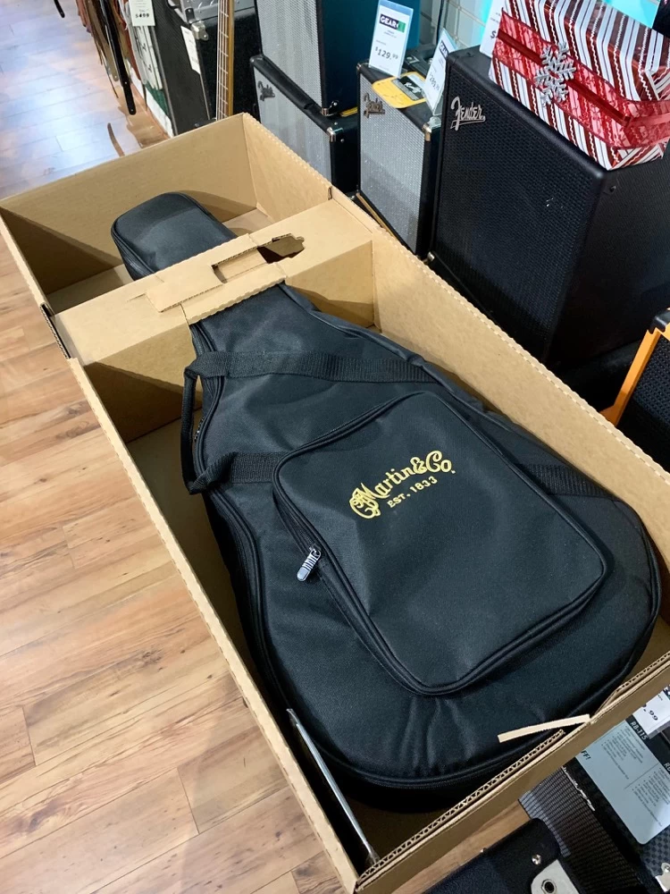 This auditorium shaped guitar is great for travel and comes packed with tone from it’s solid spruce top. The back and sides are sapele for a strong midrange and warm tone. it has a hand rubbed neck and comes strung with Martin Retro strings. Includes padded gig bag.