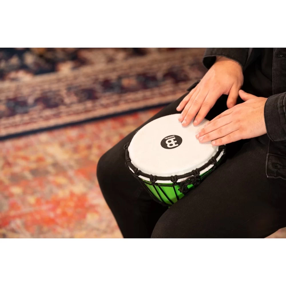 Who doesn’t like playing your favourite rhythms on a Djembe? Portable with big sound, great tone, and lightweight synthetic shell, the MEINL JR. Djembe is the perfect instrument to grab and go for any occasion. From outdoor gatherings with friends to spontaneous jam sessions or teaching others about rhythm, these compact djembes deliver. The synthetic head is secured with pre-stretched ropes to better hold the tuning. Great for any age or skill level.