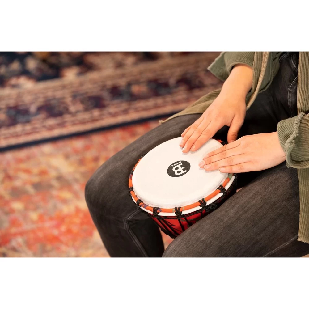 The is nothing like the feathing of creating rhythms and beats on a cool Djembe. Portable with big sound, great tone, and lightweight synthetic shell, the MEINL JR. Djembe is the perfect instrument to grab and go for any occasion. From outdoor gatherings with friends to spontaneous jam sessions or teaching others about rhythm, these compact djembes deliver. The synthetic head is secured with pre-stretched ropes to better hold the tuning. Great for any age or skill level.