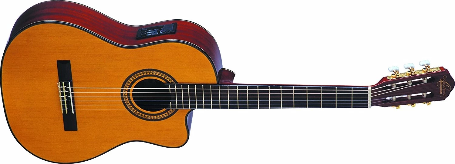 A built in preamp with tuner and cutaway body style make the OC11CE a fantastic stage or performance classical guitar.
