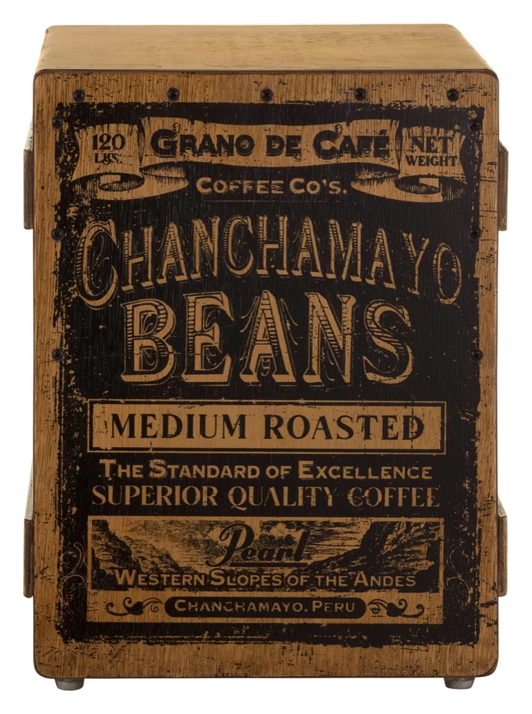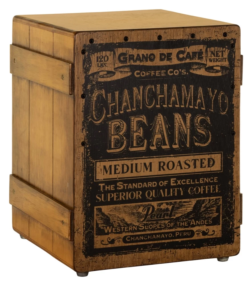 Why not add some vibe to your playing with a cajon that looks like it’s been around the block. The body of this Primero cajon is constructed using Shorea plywood and has a crate design that features a meranti faceplate. Meranti is a wood known for its relative hardness and straight grain making it ideal for cajons. A built in bass port magnifies the massive low-end tone of the cajon while three sets of fixed snare wires provide a bright, crisp snare response. This cajon has a silkscreened finish that features a graphic coffee bean design. Primero cajons have a thunderous deep sound you have to hear and good to the last drop.