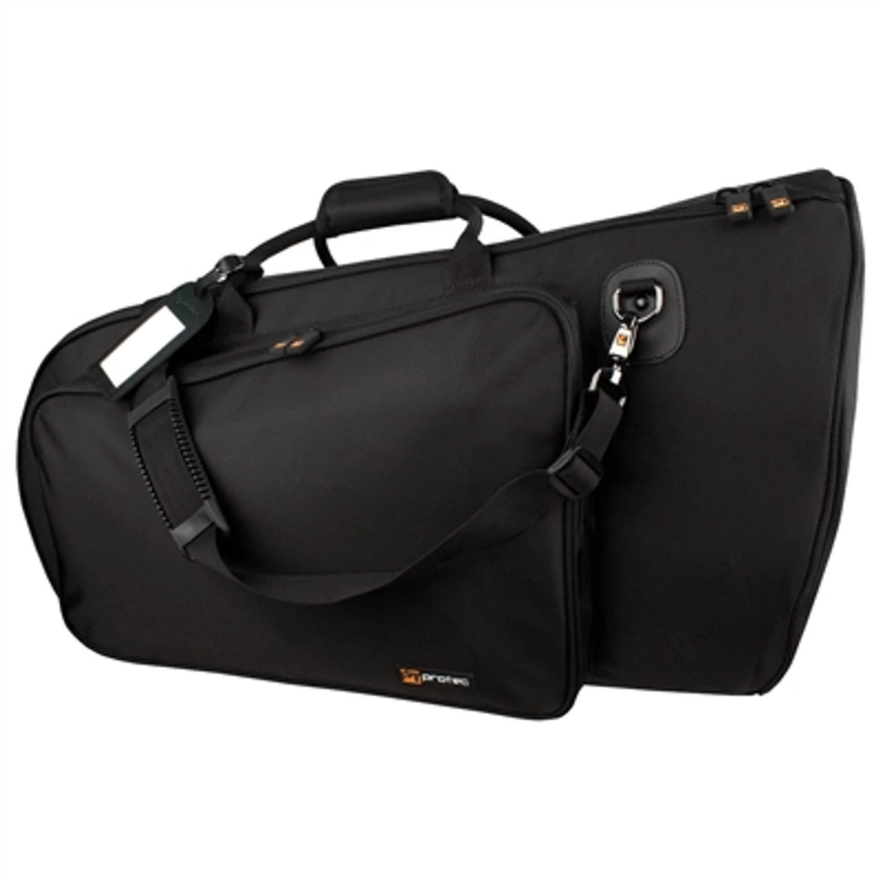 Protec’s Gold Series Gig Bags for Euphonium feature a weather resistant nylon exterior, roomy exterior pocket that can fit sheet music, super soft interior lining, built-in padded backpack straps, and bell area reinforced with a fiberboard lining for extra protection.