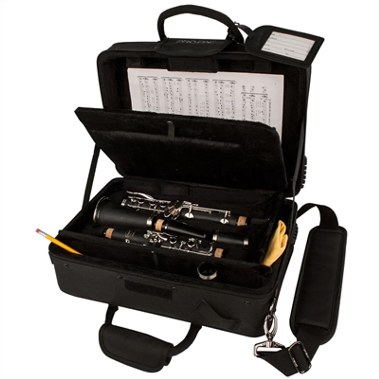The name says it all. This PRO PAC has a place for everything you wanted to carry and more. A hidden sheet music compartment in the lid, two storage compartments in the interior, a built-in organizer in the exterior pocket and a pocket in the back for more sheet music!