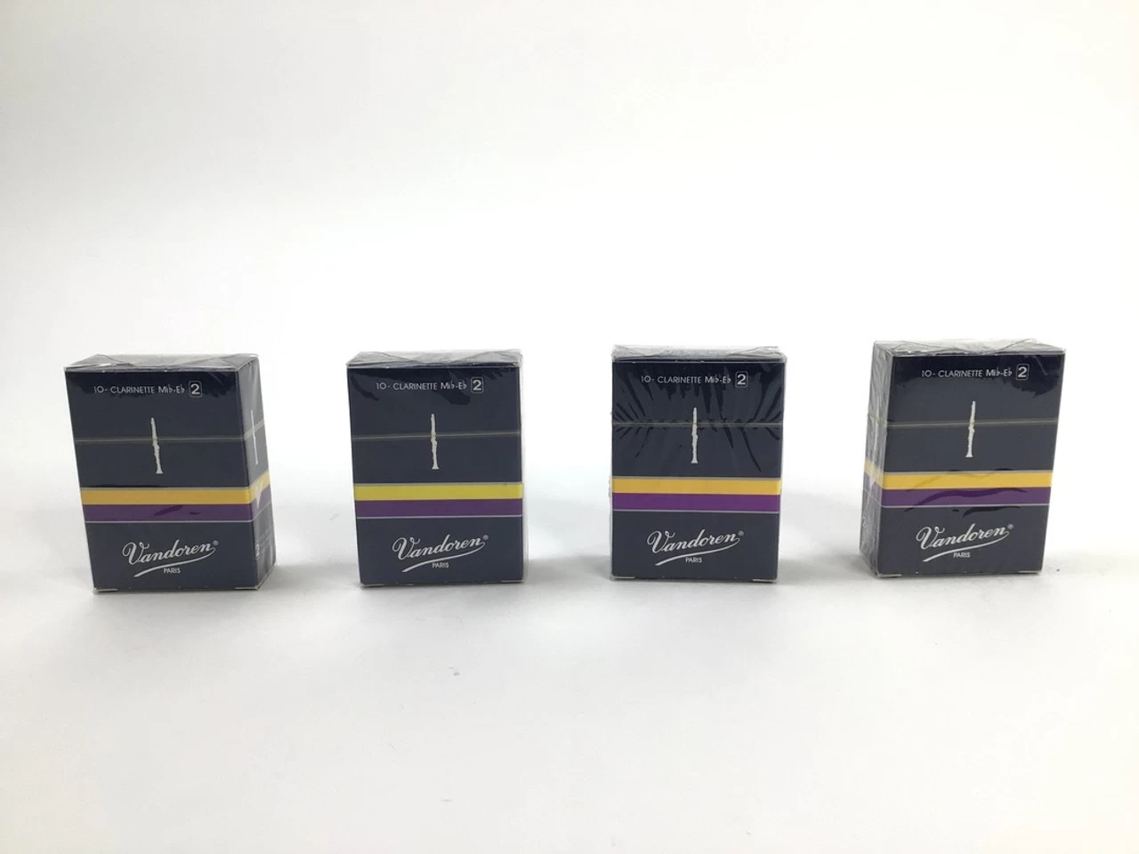 Reed Lot 20. Contains four boxes of new old stock Vandoren Eb Clarinet reeds, strength 2. Each box contains 10 reeds. *No Refunds Or Returns on Reed Lots*.
