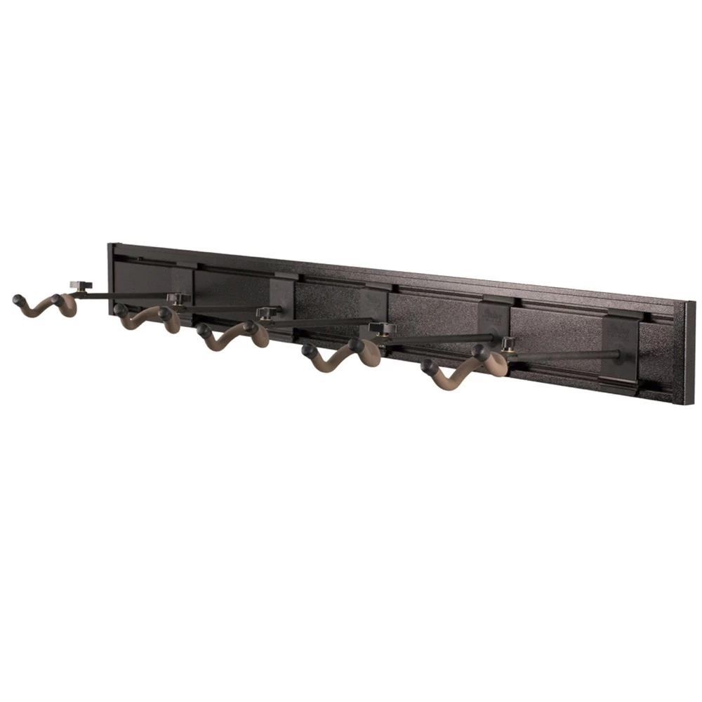 The best way to play guitar more is to have them out on display. The most convenient guitar display package on the market, features their heavy-duty Strongwall rail paired with five CCO3RL-3-K guitar hangers. This system is a go-to for many guitar owners, hanging any combination of acoustic, electric, and bass guitars. The guitar hangers are fully adjustable in spacing and even have the ability to pivot up to 180°.