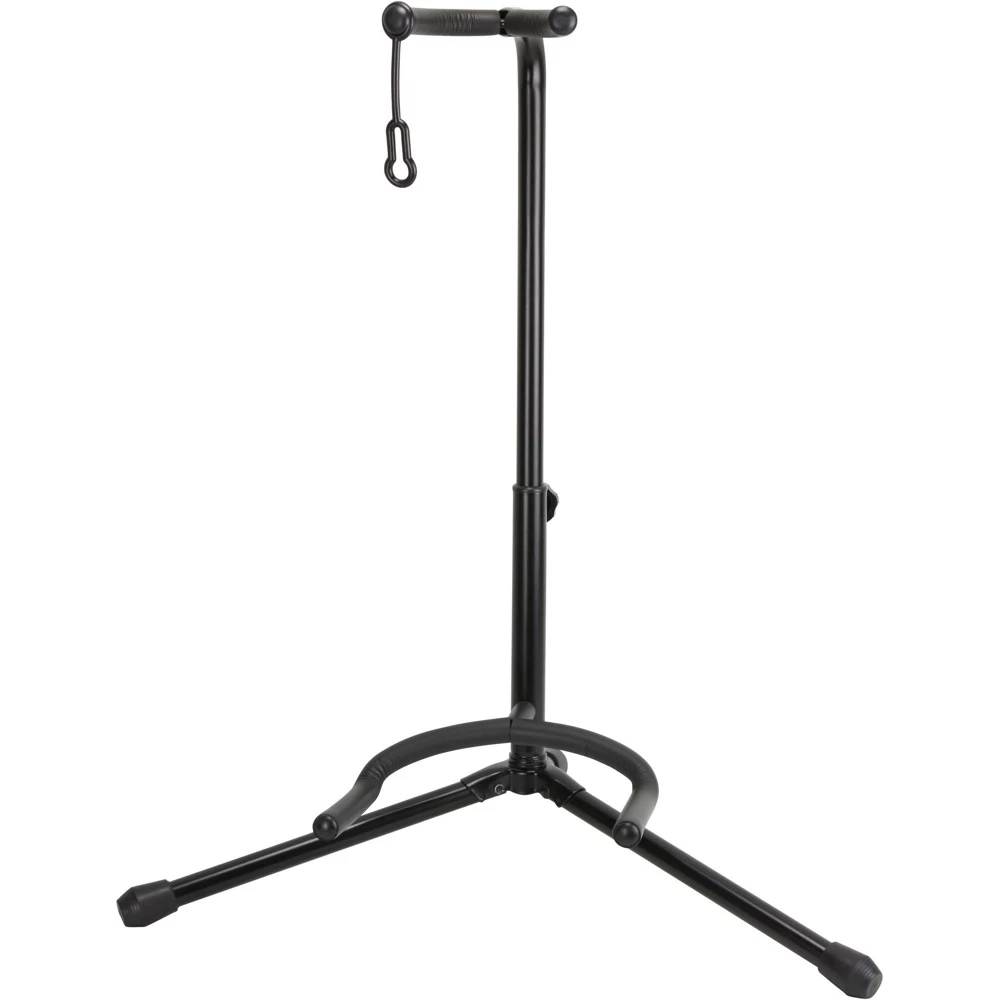 This is the classic guitar stand will a retainer at the top and foam on the cradle. It comes bagged up so you don’t have to waste cardboard, or pay for it!