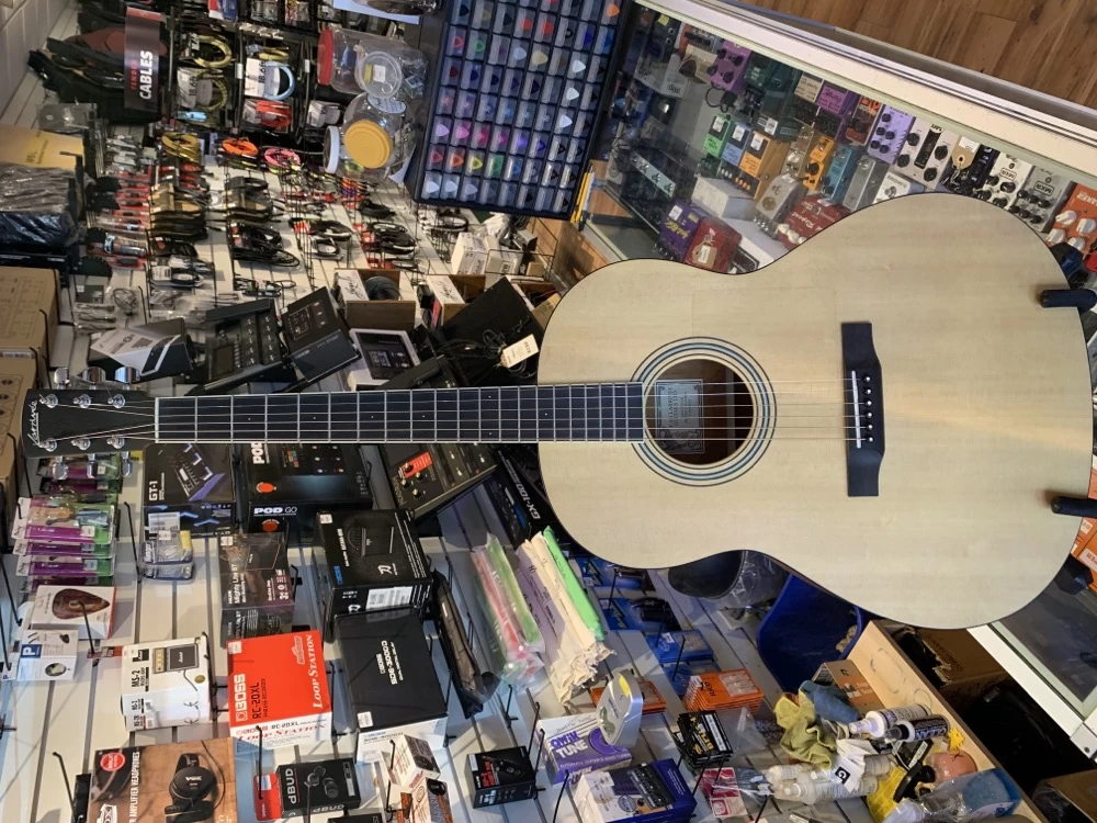 This beautiful acoustic guitar is in excellent shape, and sounds lovely! This guitar has a nice thin satin finish for easy playability and a full, balanced tonality.