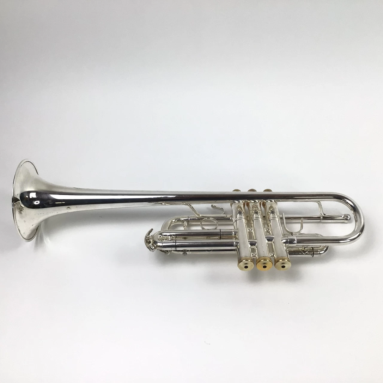 Used B&S EXC-S eXquisite, ML bore (.459″), C trumpet in silver plate. Instrument is in good condition apart from surface scratching and evidence of some bell repair. No case.