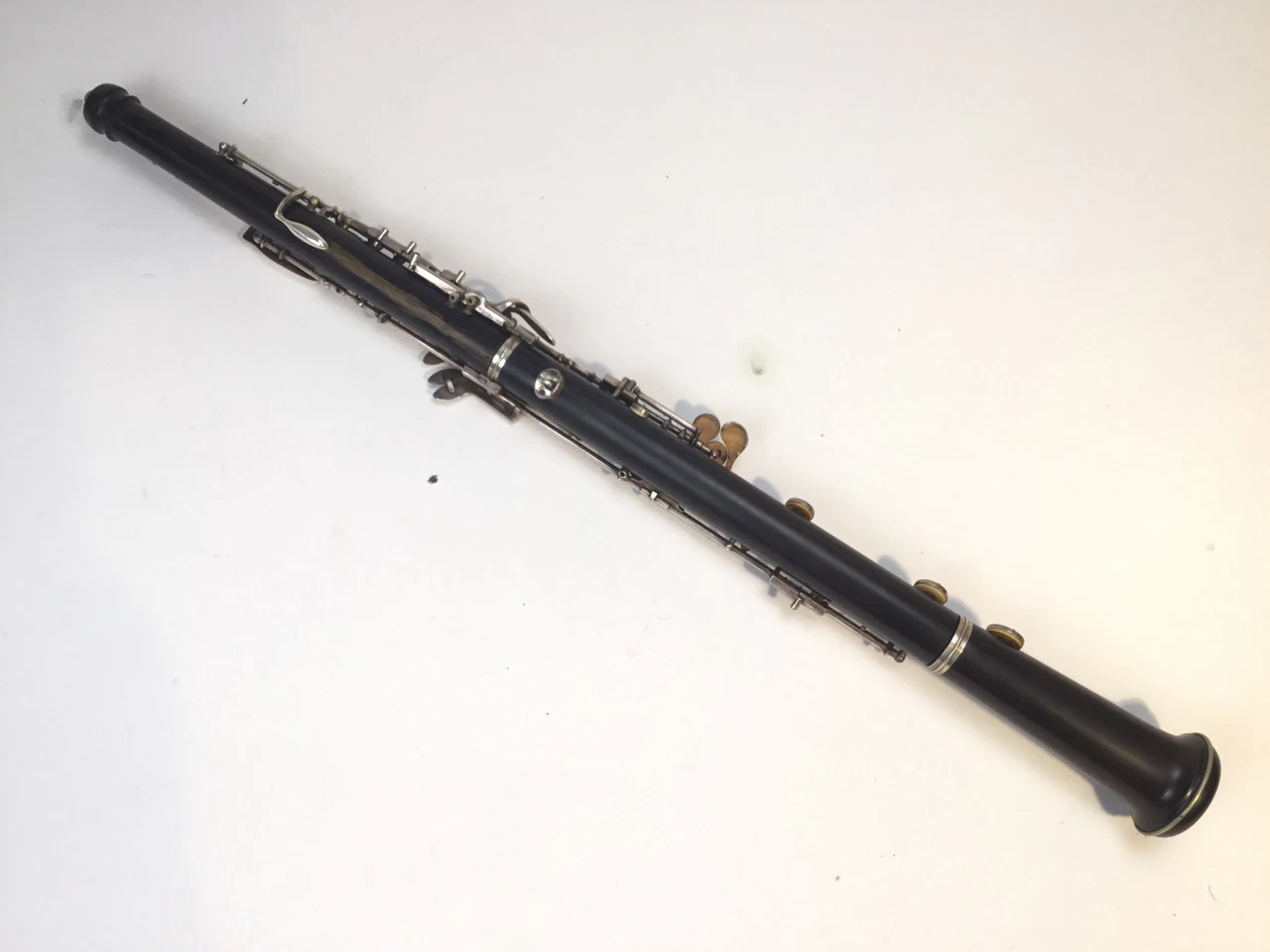 Used wood Cabart Oboe. Full conservatory system. Needs to be repadded. Wood in good shape. Slight discoloration on upper joint beneath octave key. Comes with case.