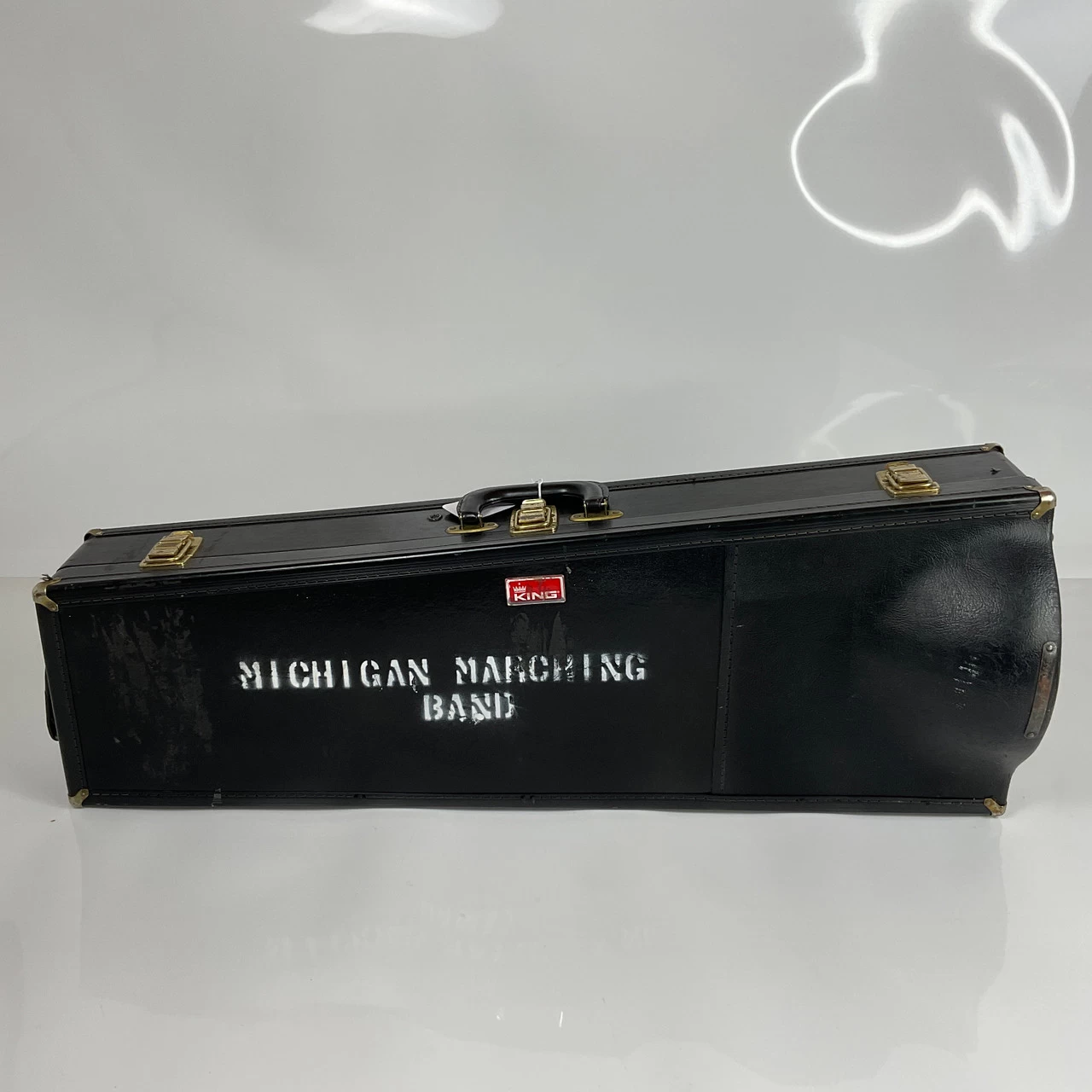 Used King 4B “Sonorous” Bb tenor trombone in lacquer finish. Features include a .547″ nickel silver handslide and 8.5″ yellow brass bell flare. Instrument is in good condition apart from surface scratching, dings, lacquer wear (and some spots of acid bleed), evidence of prior dent repair, and evidence of prior lacquer removal on the bell. Includes case.