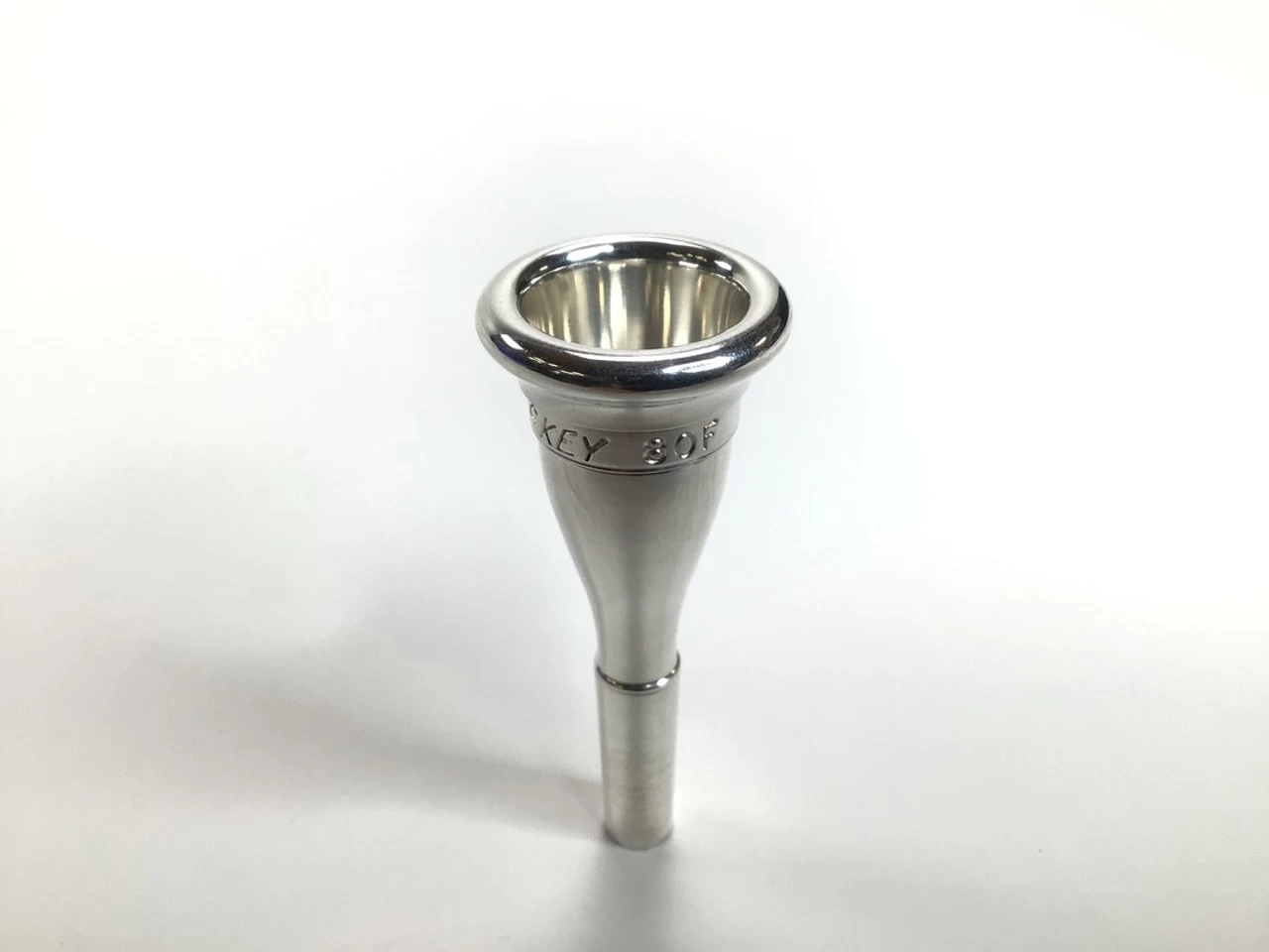 Used Laskey 80F French horn mouthpiece in silver plate. This mouthpiece was made in Scott Laskey’s workshop and features his earlier blank. Mouthpiece is in very good condition apart from minor surface scratching and insertion wear.