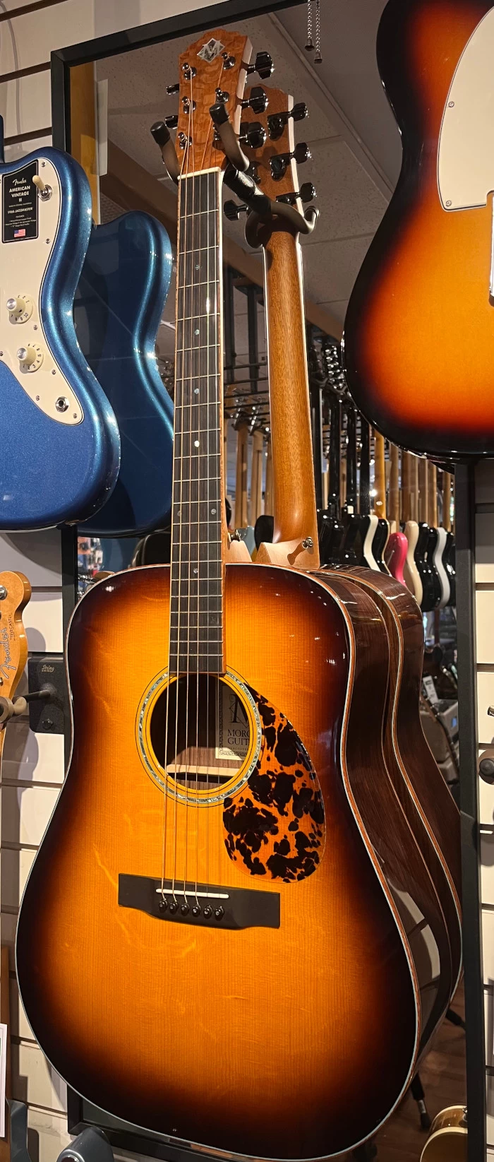 This Consignment Morgan Dreadnought Rosewood acoustic features Indian Rosewood back and sides, AAAA Sitka Spruce top, South American Mahogany Neck, Lacewood Peghead Veneer with a stunning Morgan Inlay, figured binding and a gorgeous Tobacco Sunburst Top!