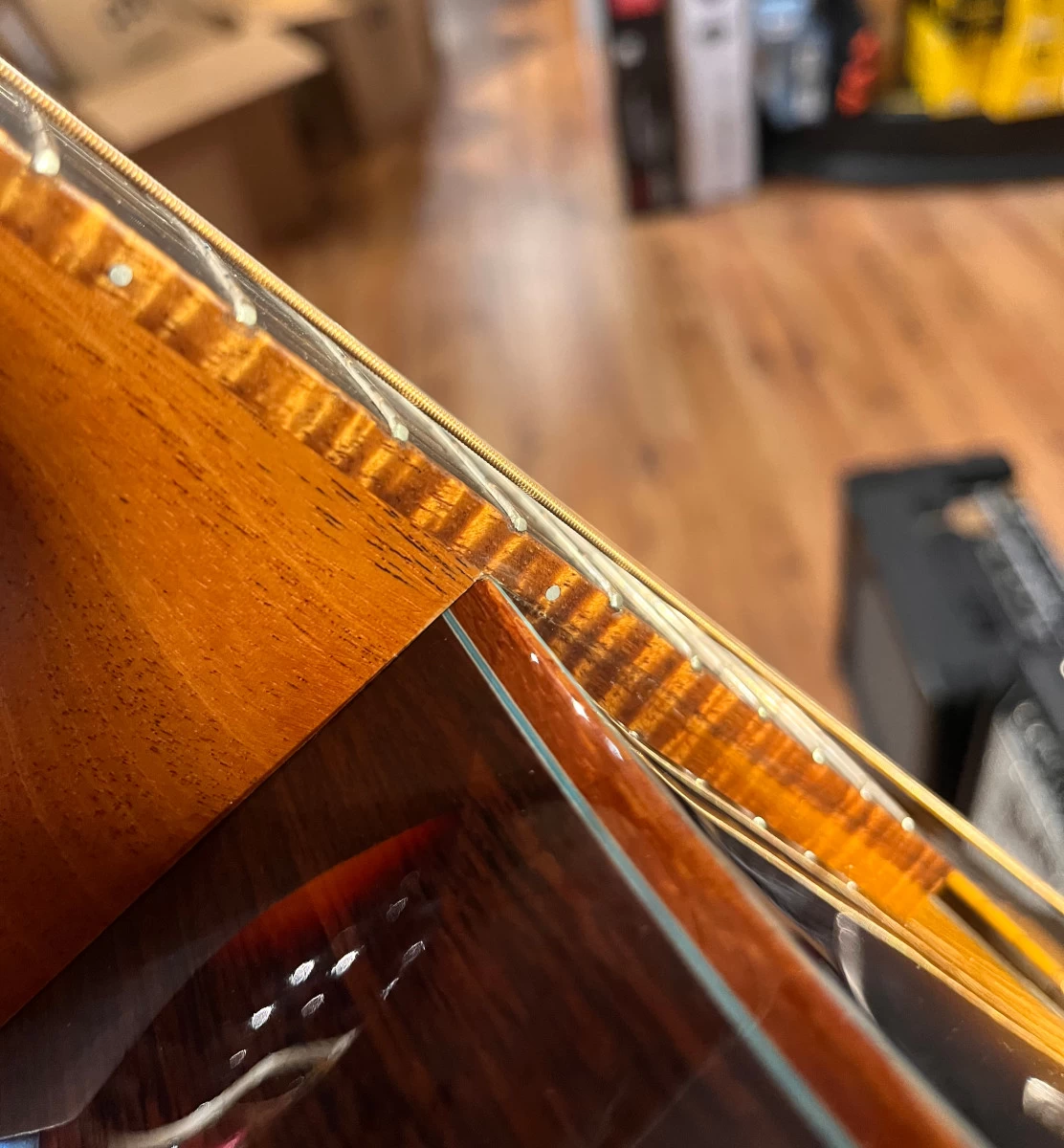 The AAAA Sitka Spruce top features some nice subtle bear claw too!
