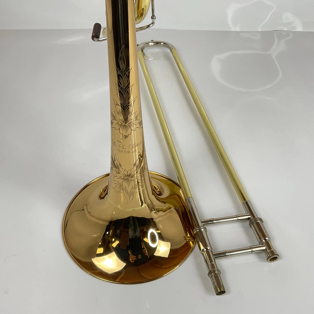 Used S. E. Shires Bb/F/Gb/D independent bass trombone in lacuqer finish. Features include a B62 .562″ bore handslide, indepdendent open rotary valve section, B2 and B3 removeable leadpipes, and B11 8G 10 gold brass 10″ bell flare. Instrument is in good condition apart from surface scratching, some minor lacquer wear, and some red rot in the handslide. Includes case.