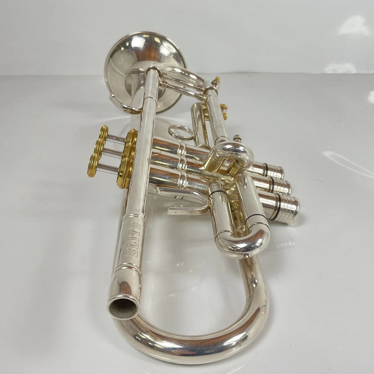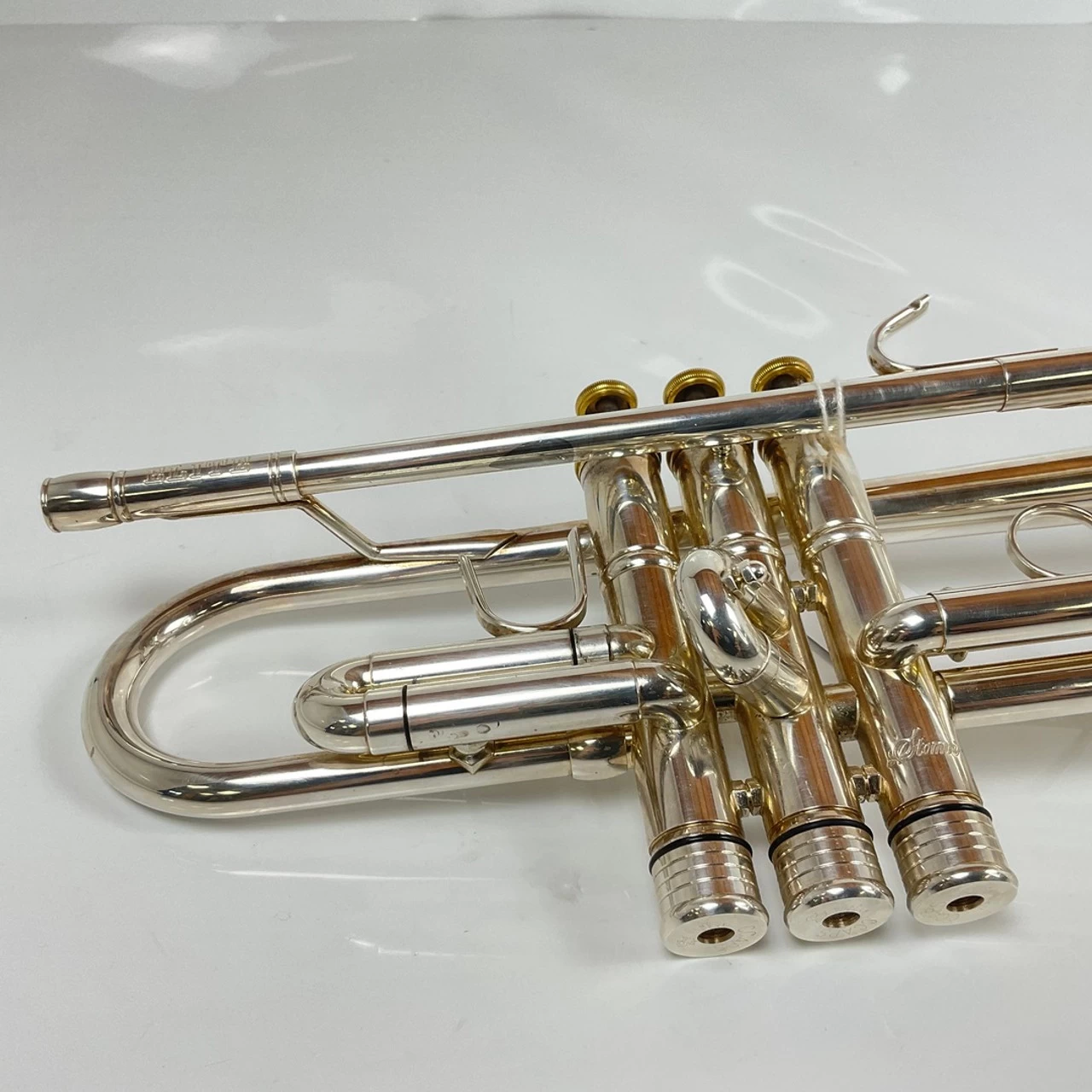 Used Stomvi Elite, ML bore, Bb trumpet in silver plate with gold plated trim. Instrument is in very good condition apart from some surface scratching and some surface imperfections. No case.