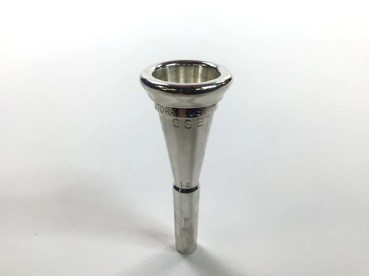 Used Stork CSB18 French horn mouthpiece in silver plate. Mouthpiece in very good condition apart from minor insertion wear.
