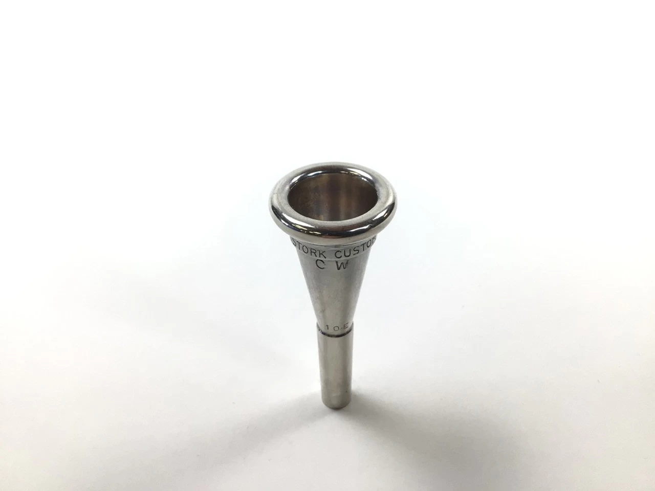 Used Stork CW10E French horn mouthpiece in silver plate. Mouthpiece in very good condition apart from some insertion wear.
