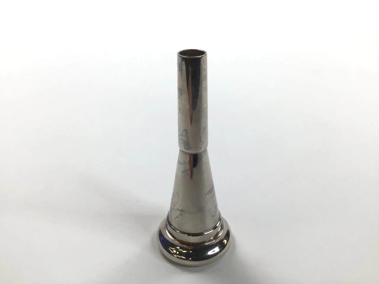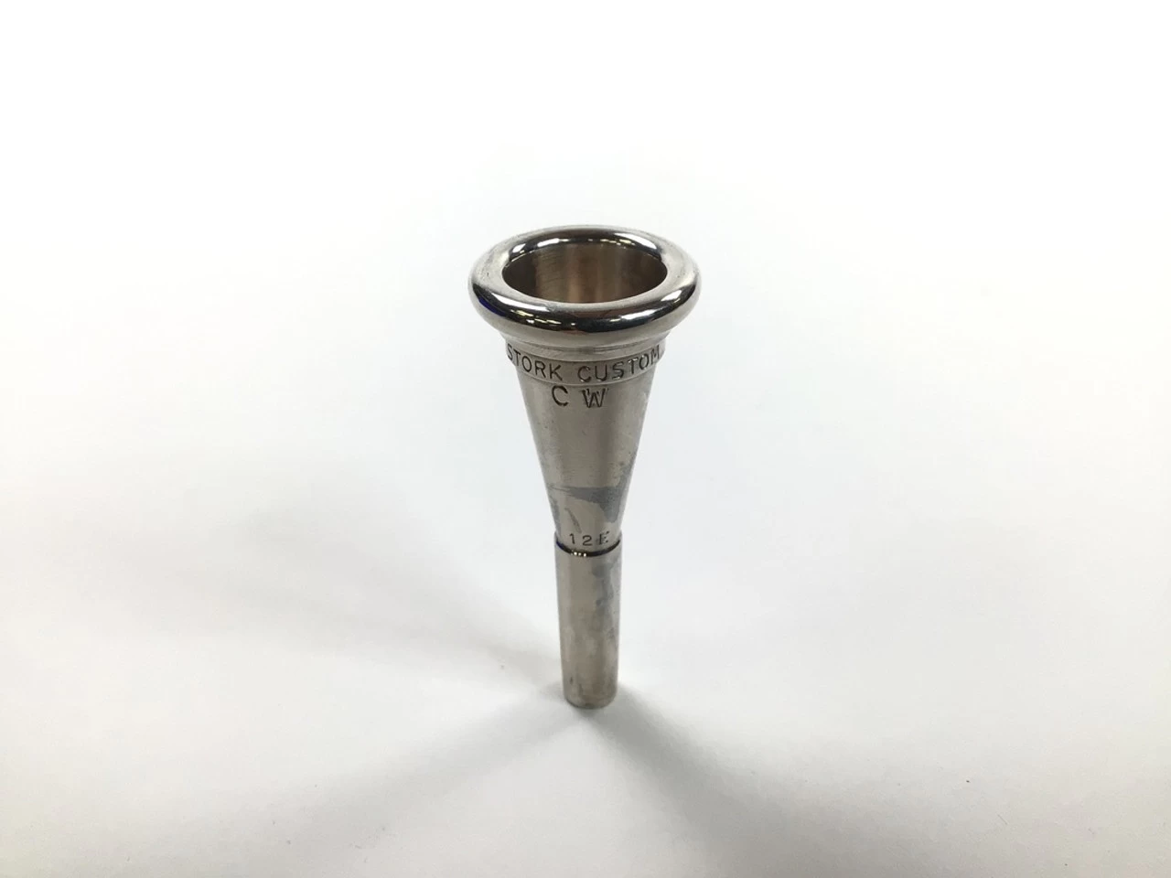 Used Stork CW12E French horn mouthpiece in silver plate. Mouthpiece in very good condition apart from some insertion wear.
