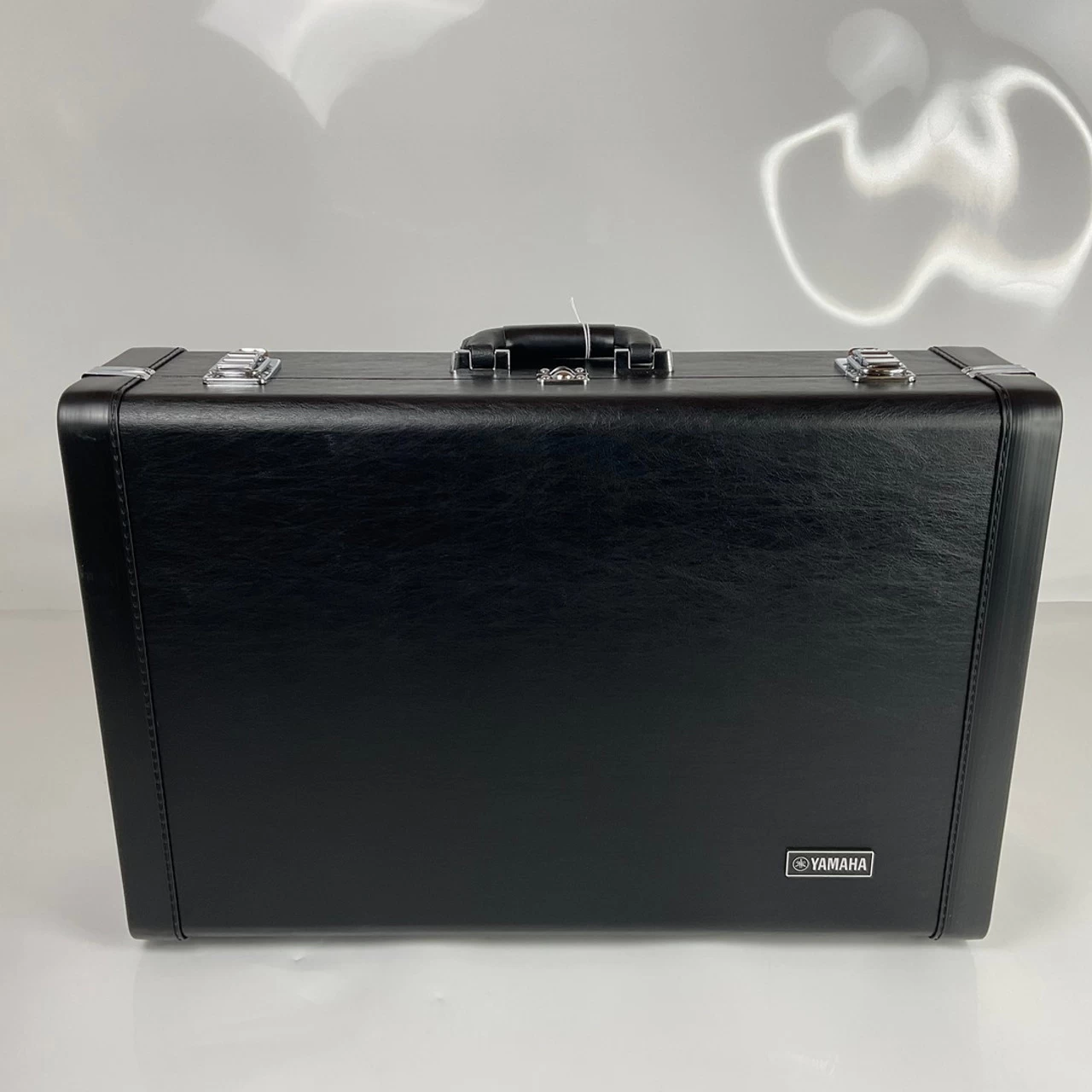 Used Yamaha 567GDB F/Bb double French horn in lacquered gold brass. Features include a modified Knopf wrap, .472″ bore, mechanical linkages, and medium gold brass detachable bell flare. Instrument is mint, like-new condition and has barely been played. The gold brass gives this model a more rounded sound. Includes original Yamaha case.
