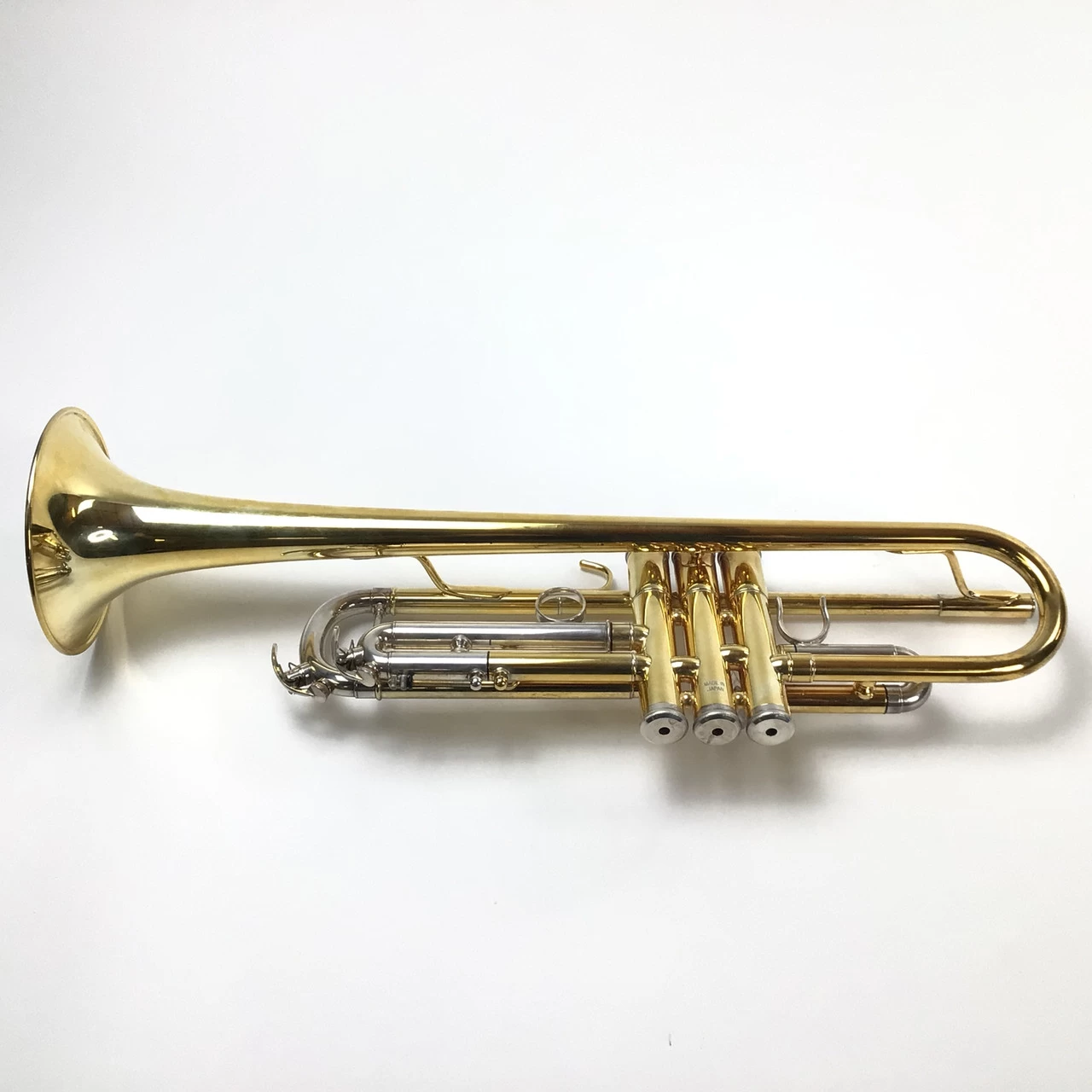 Used Yamaha YTR-800GGP, ML bore (.459″), Bb trumpet in gold plate (slides are in silver plate). Instrument is in very good condition apart from some peeling plating at the top of the receiver. Includes original Yamaha case.