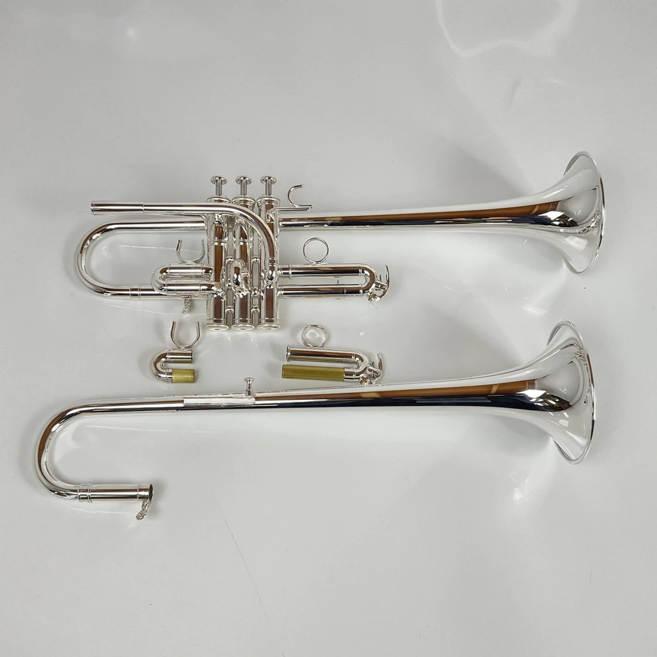 Used Yamaha YTR-9635 Eb/E trumpet in silver plate. Instrument is in mint, like-new condition and has barely been played. Includes both Eb and E slides and heavyweight bells and original Yamaha case.