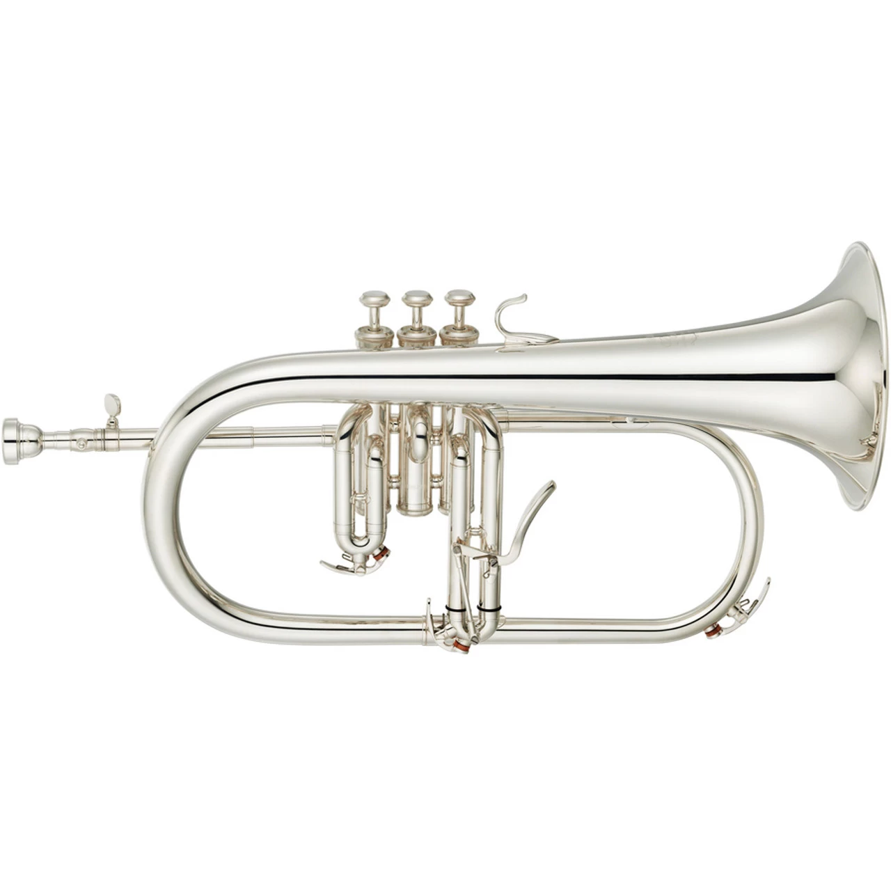 Custom Flugelhorn; key of Bb; .413″ bore; 6″ two-piece gold-brass bell; Monel pistons; vertical valve slides; newly designed leadpipe; new trigger system; FHC-8315G case; 14F4 mouthpiece