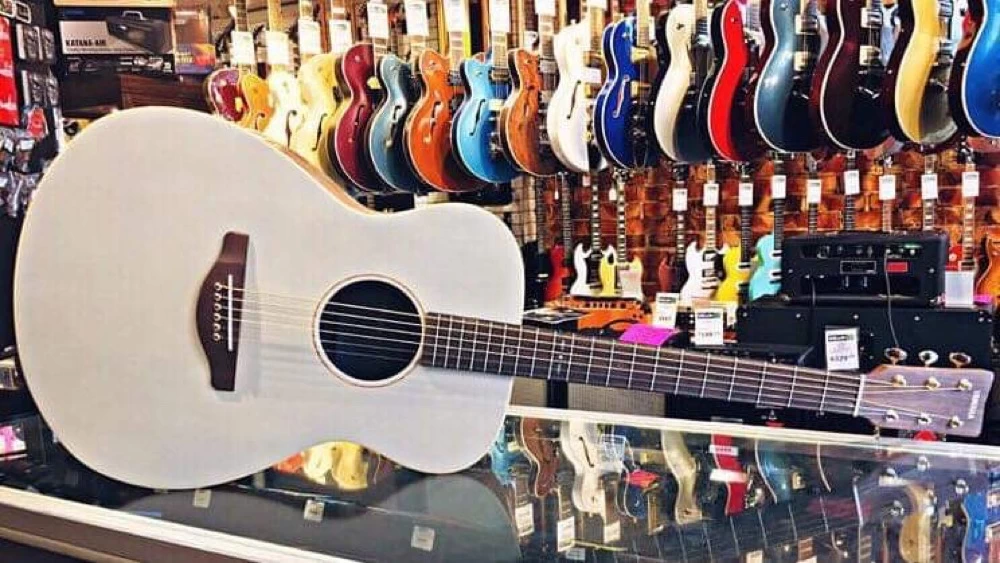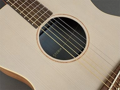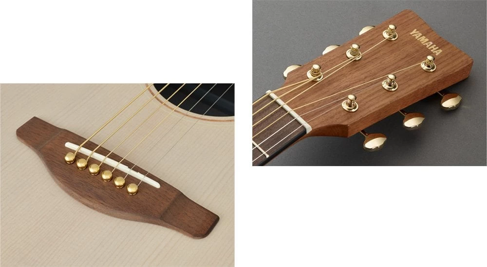 This acoustic guitar from Yamaha serves as a wonderful instrument which will inspire your creativity – constructed with a mahogany body and solid spruce top, passive under-saddle pickup, comfortable concert body size and shorter scale length – and serve as a beautiful accent piece in your home, with its lovely semi-gloss off-white top finish, natural back and sides, light blue finished interior, and champagne-gold accents.